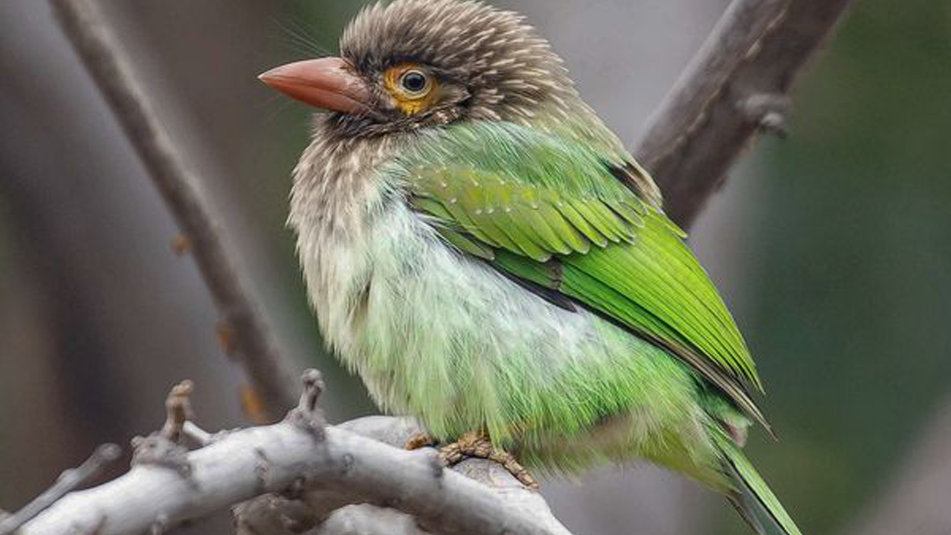 Brown-Headed Barbet Bird In Blur Background HD Birds Wallpaper