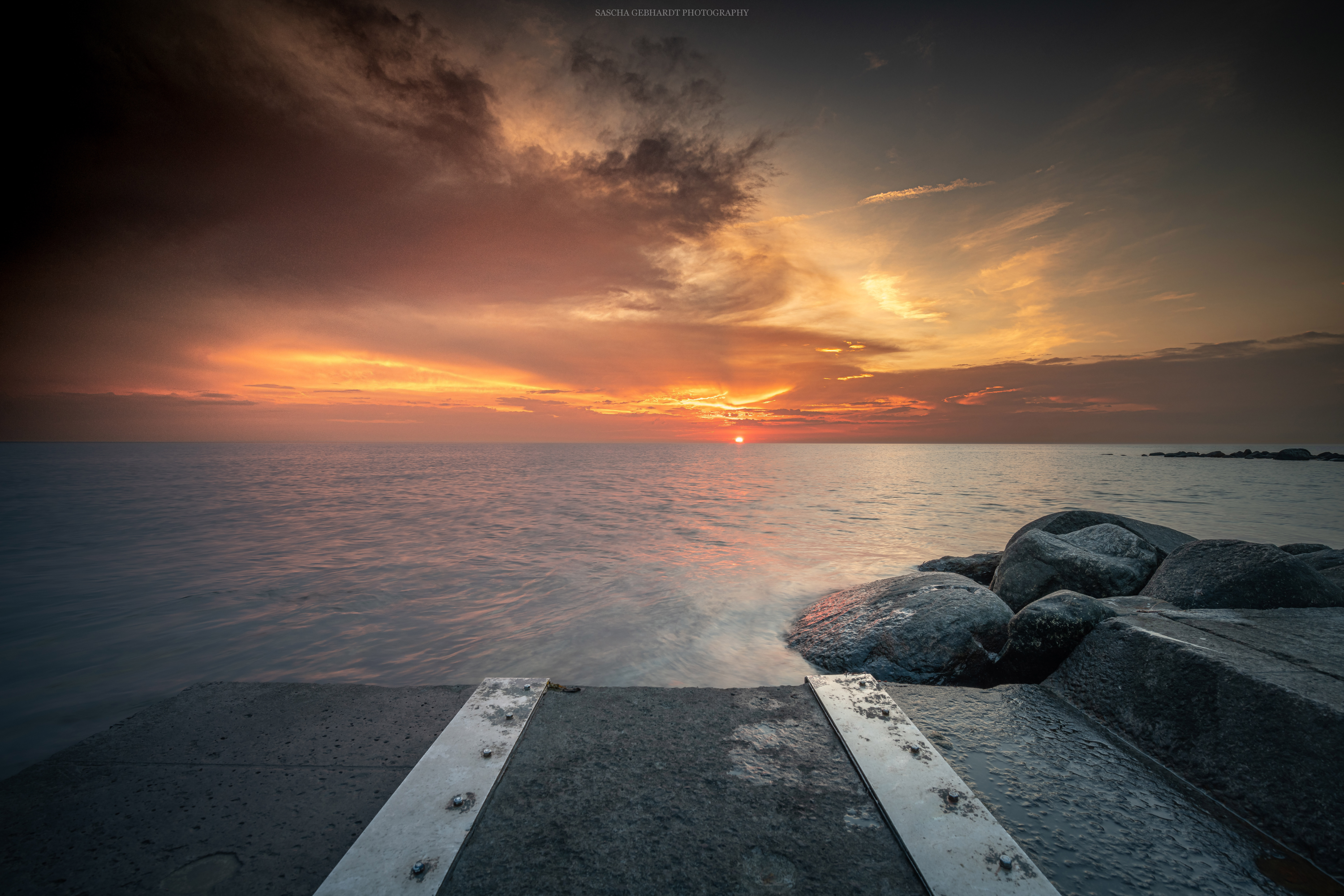Coast Stones Sand Sunrise 4k Wallpaper