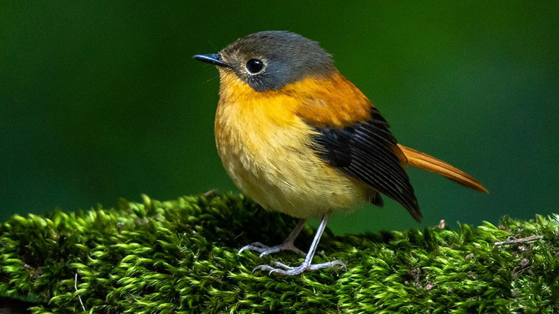 Black And Orange Flycatcher On Green Leaves In Blur Green Background HD Birds Wallpaper
