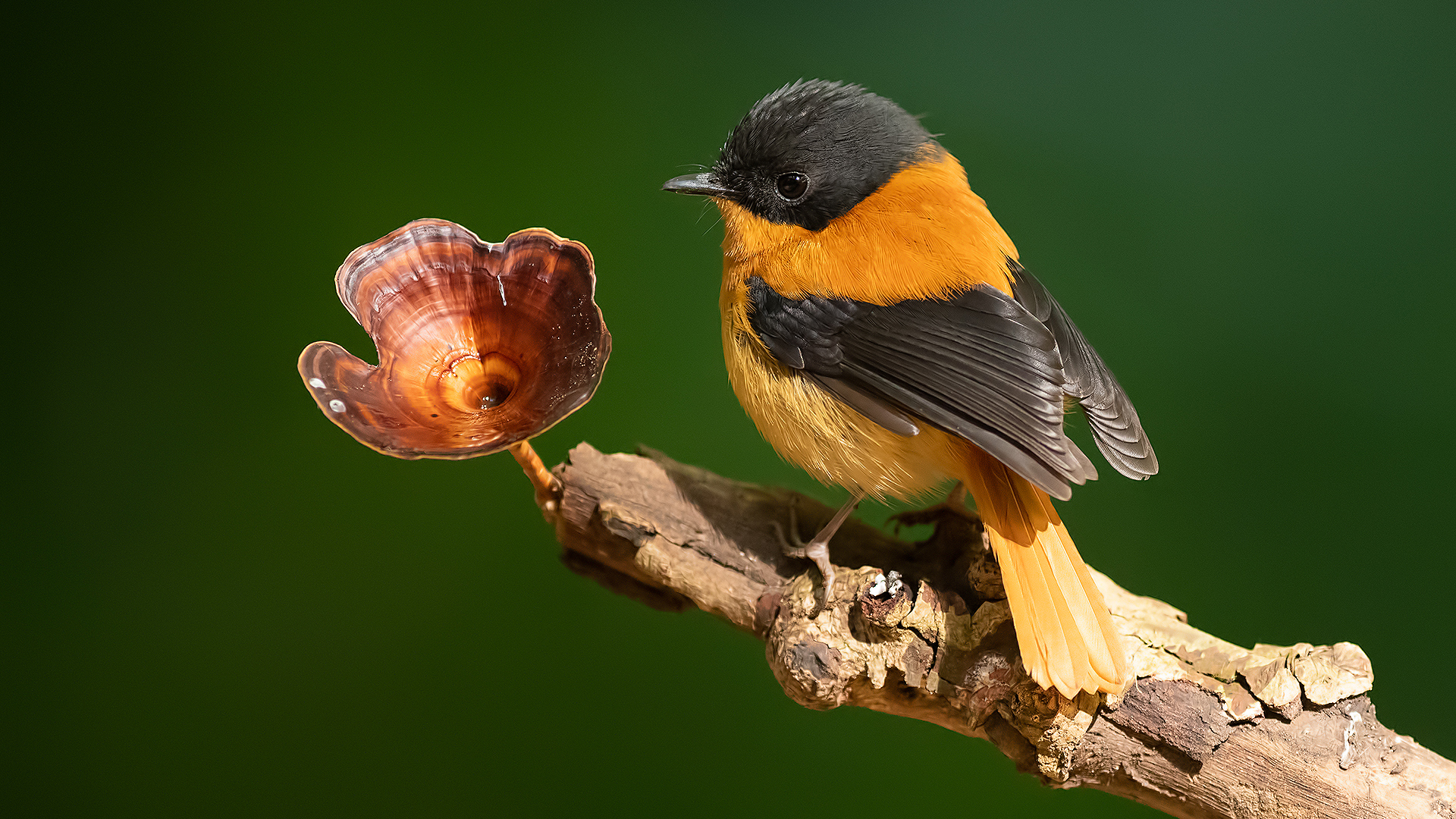 Black And Orange Flycatcher Bird In Green Background HD Birds Wallpaper