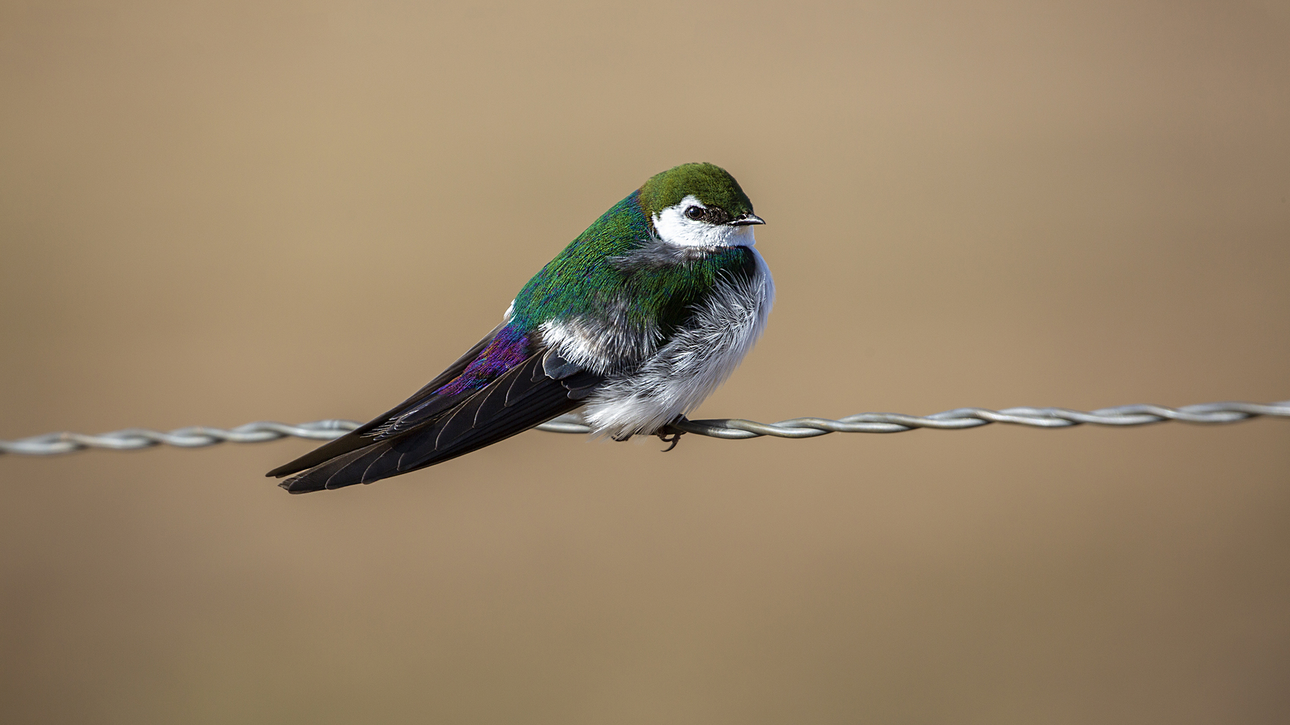 Violet-Green Swallow Bird On Chainlink Fence HD Birds Wallpaper