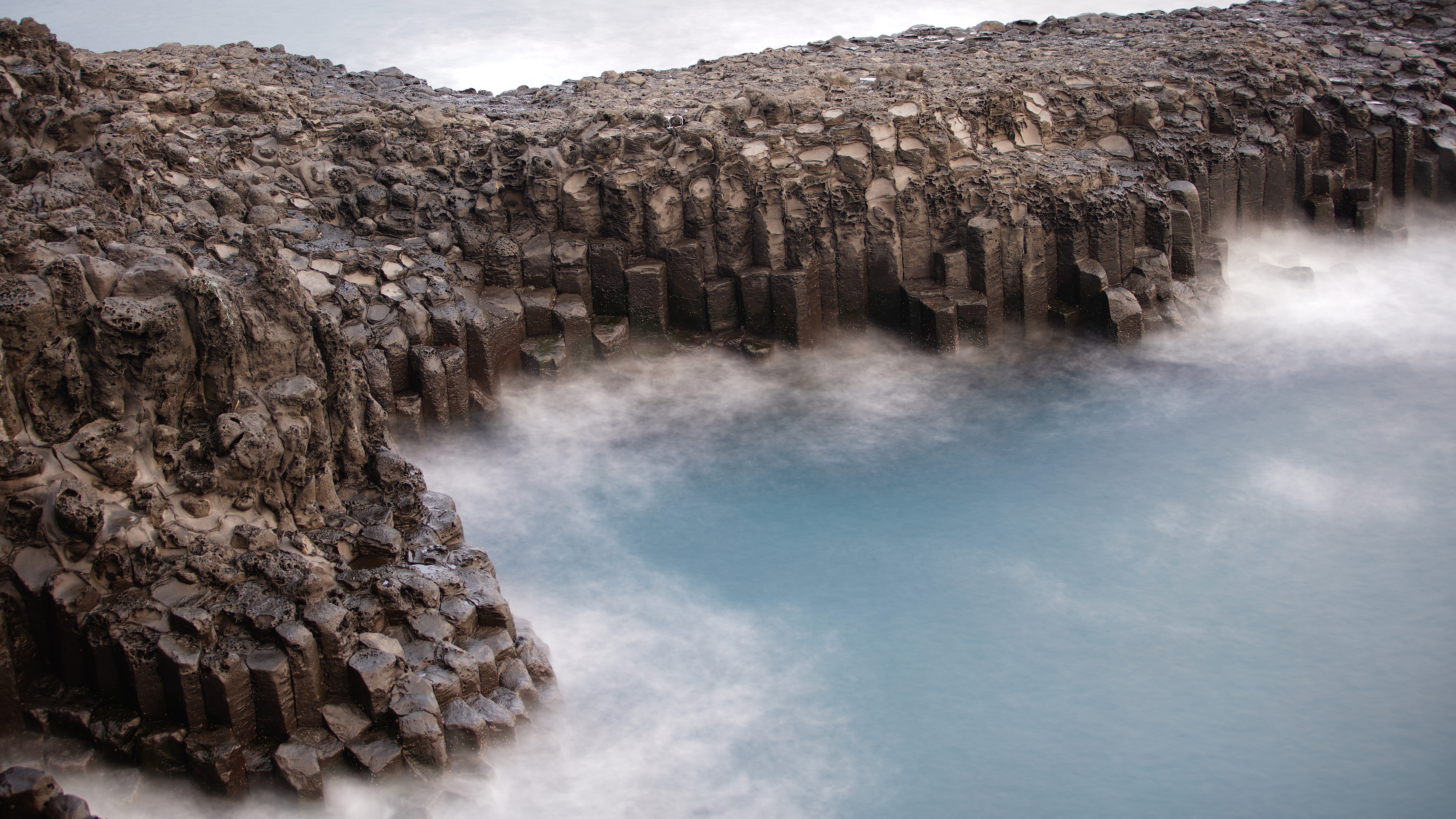 Coast Columnar Basalt Jeju Island Ocean Rock South Korea 4K 8K HD Nature Wallpaper