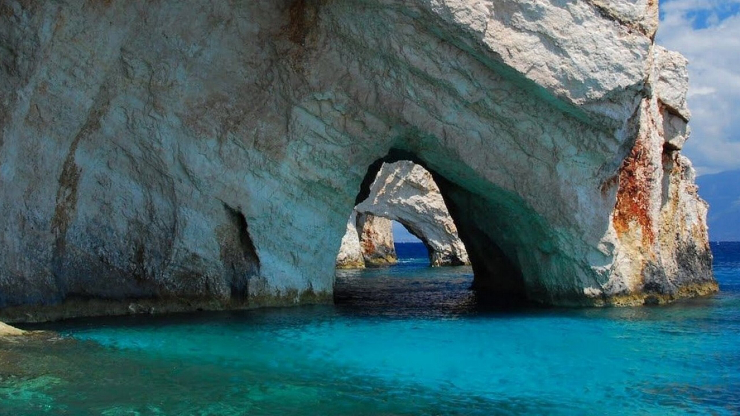 White Rock Caves Ocean In White Clouds Blue Sky Background HD Nature Wallpaper
