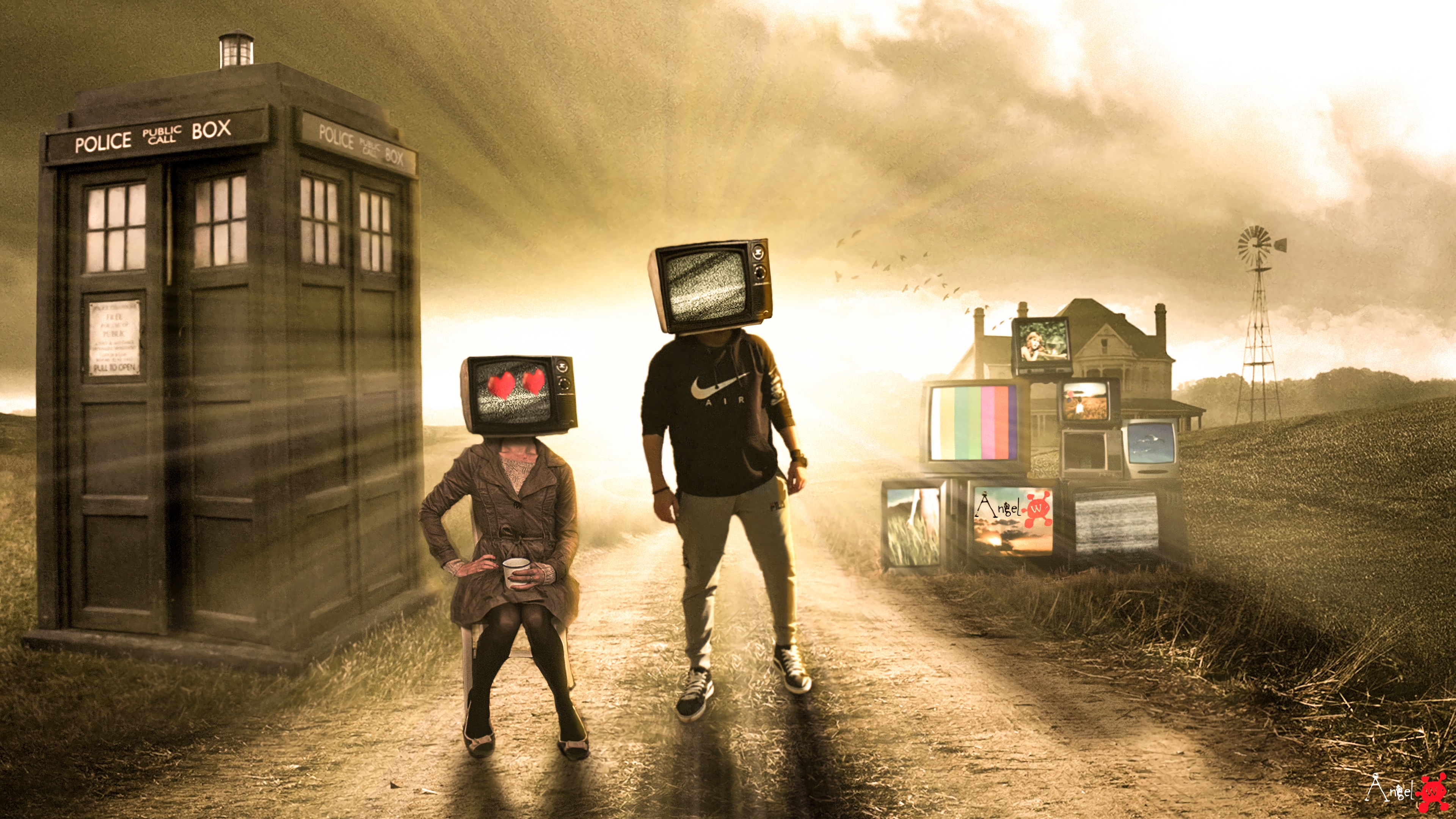 Tv People Illustration 4k Wallpaper