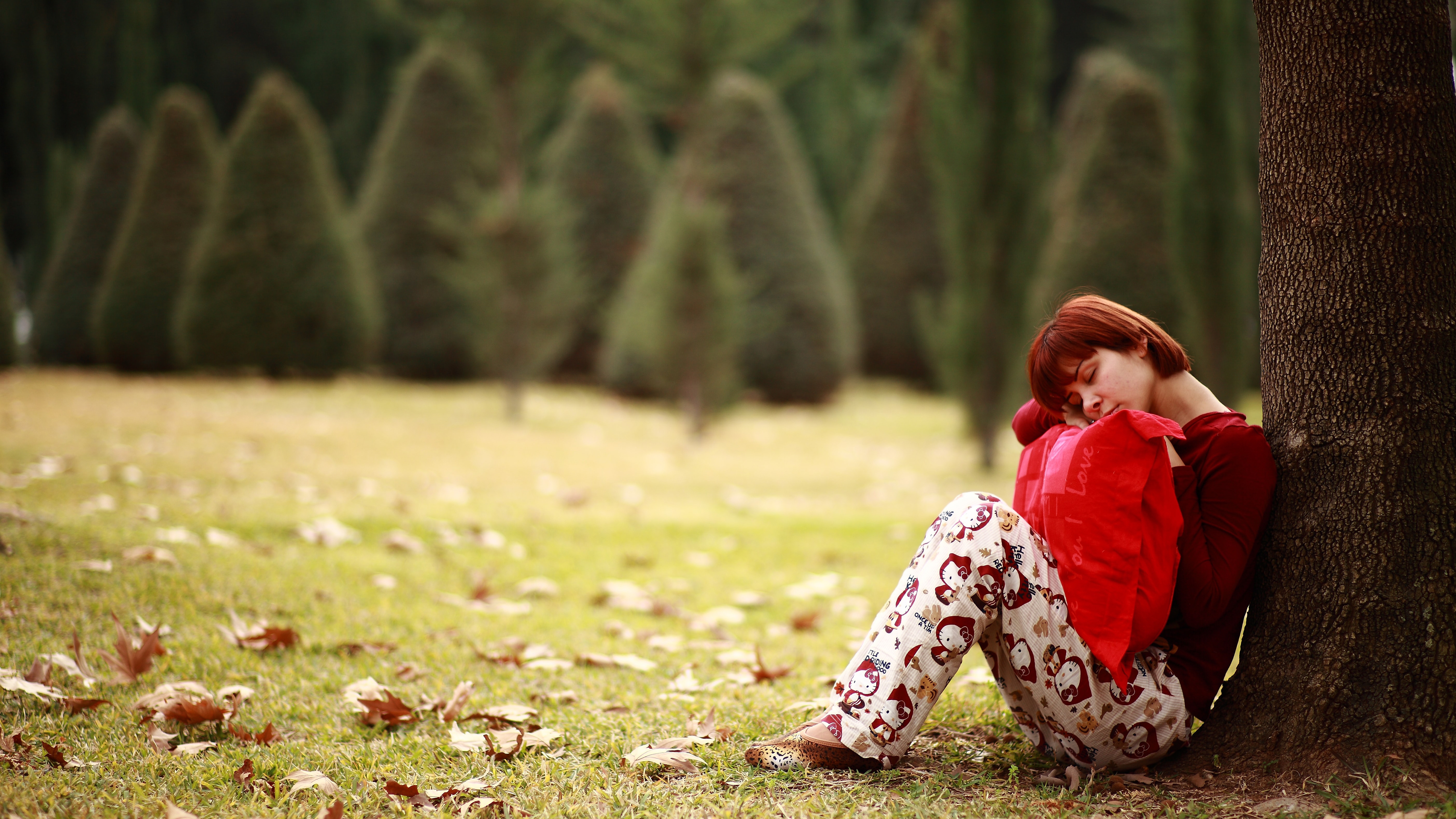 Sad Girl Sitting Under Tree 4K 5K HD Wallpaper